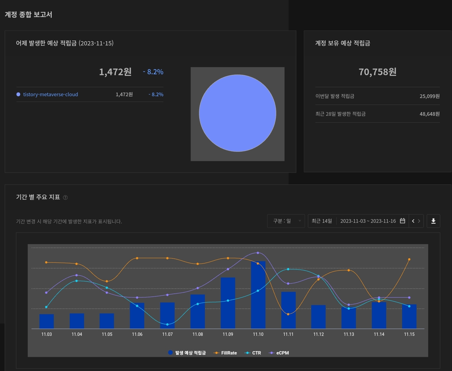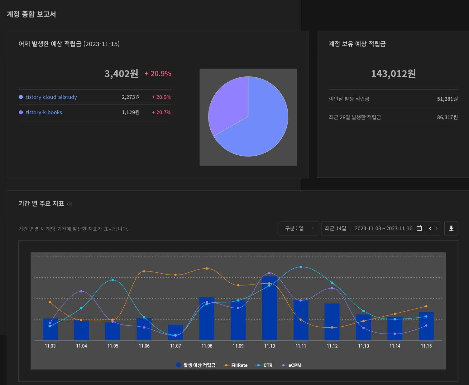 | [역행자 동기부여] 블로그 성장기 애드핏&애드센스 수익 - 11/18 !! (25) | 2023.11.18 |