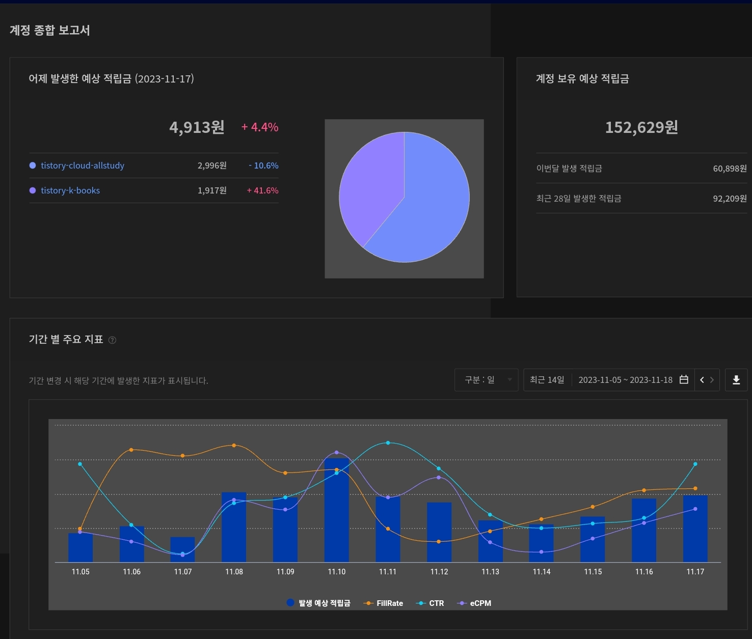 | [역행자 동기부여] 블로그 성장기 애드핏&애드센스 수익 - 11/15 !! (42) | 2023.11.15 |