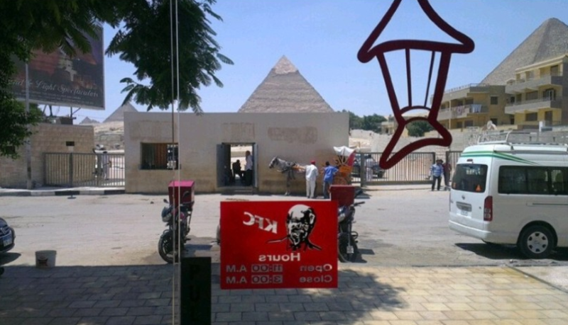 피자헛 매장 앞으로 스핑크스와 피라미드가 위치하고 있음