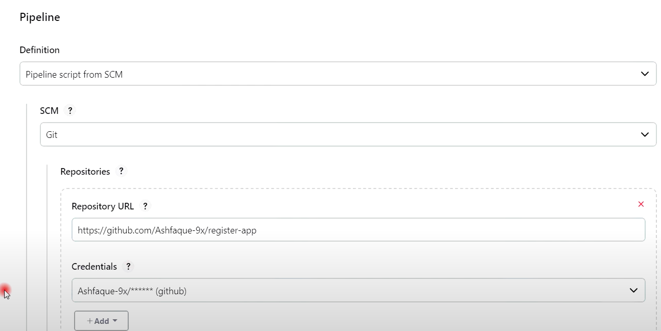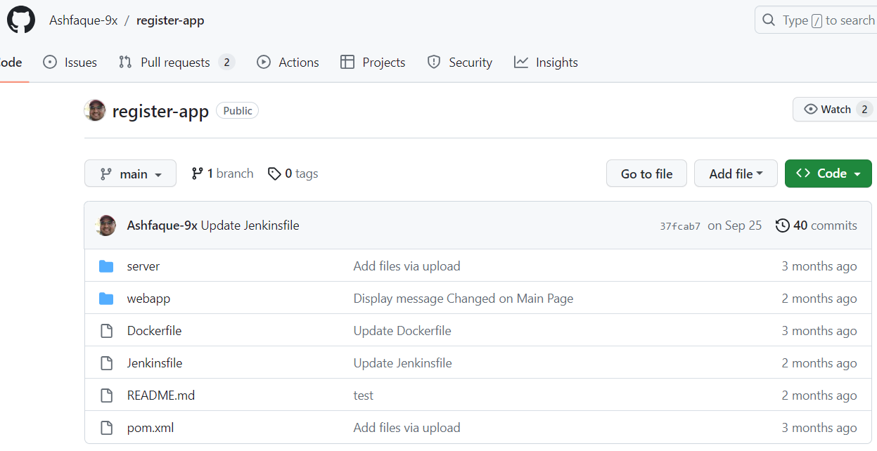 git branch: 'main', credentialsId: 'github', url: 'https://github.com/dhrbduf/register-app'
