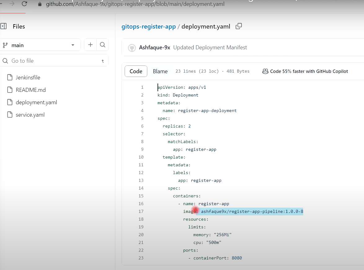 git commit -m "Updated Deployment Manifest"