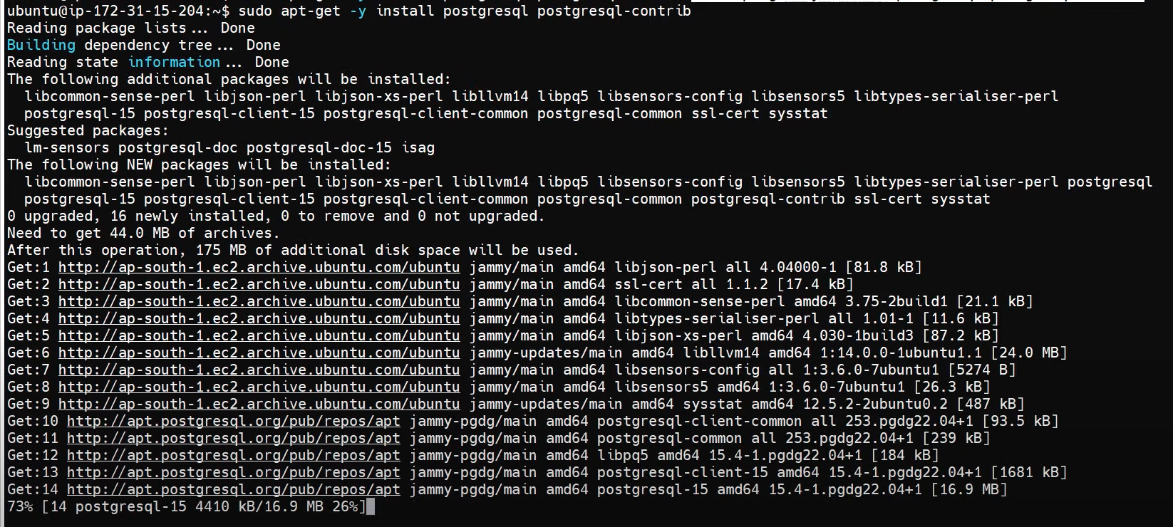 $ sudo apt-get -y install postgresql postgresql-contrib