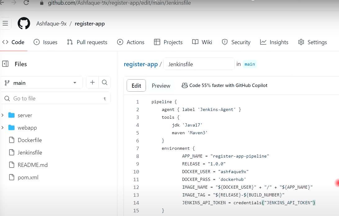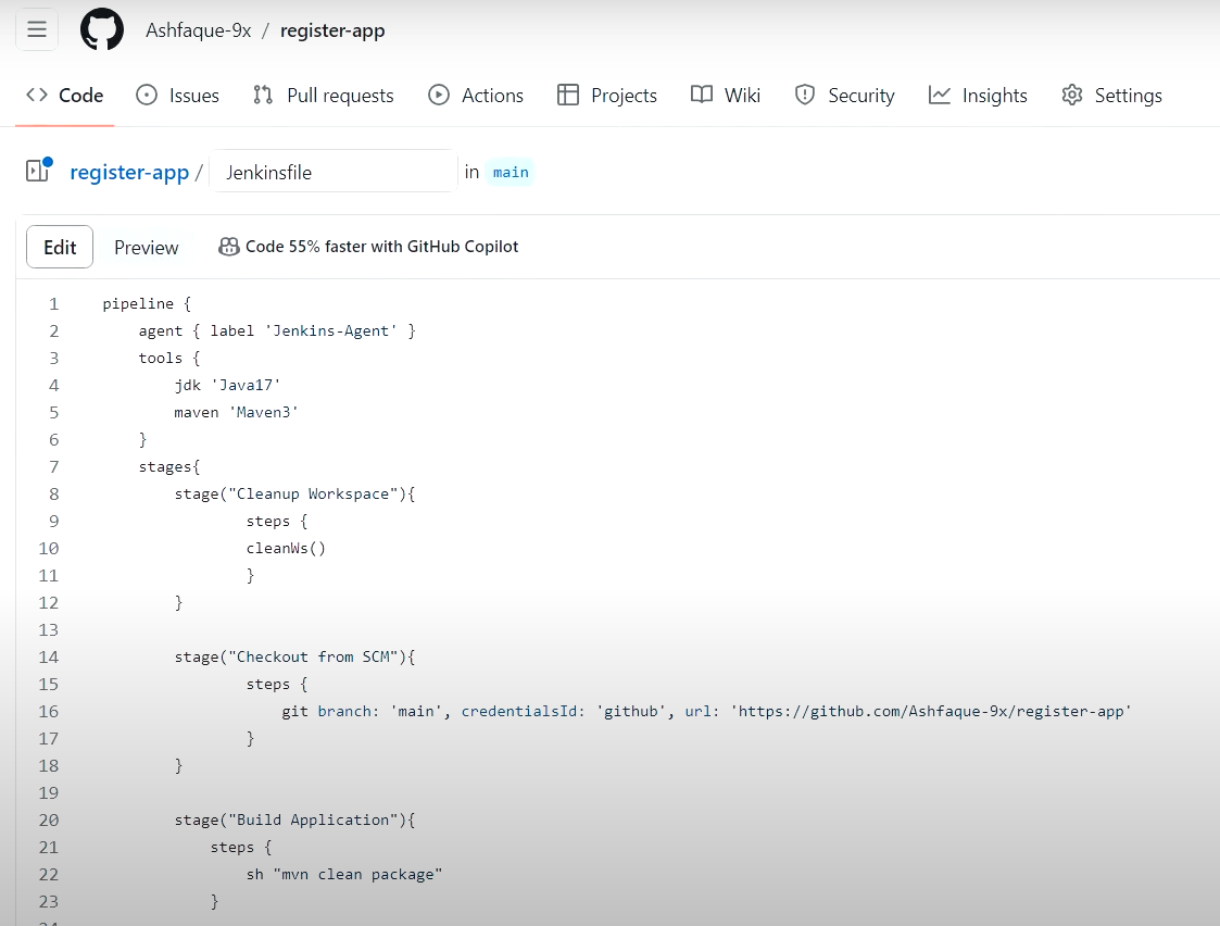 ## 깃허브 register-app 이동 (CI 빌드 역할 - Jenkinsfile 수정)