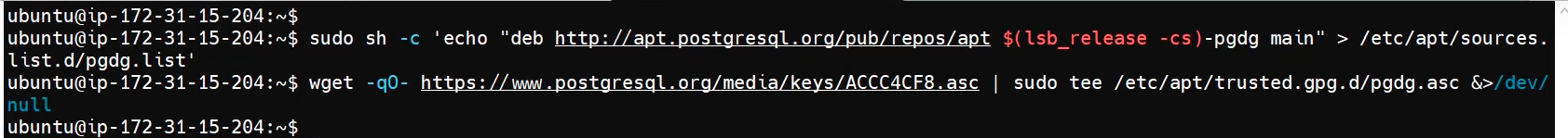 $ wget -qO- https://www.postgresql.org/media/keys/ACCC4CF8.asc | sudo tee /etc/apt/trusted.gpg.d/pgdg.asc &>/dev/null