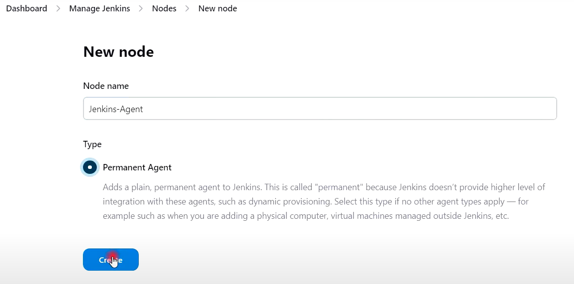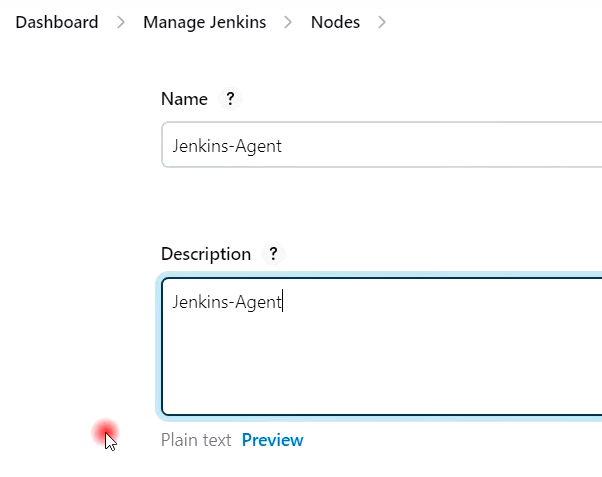 - 젠킨스 관리 --> 노드 --> New Node 클릭 --> Jenkins-Agent 생성