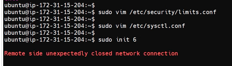 - sudo init 6 (서버 리부팅)