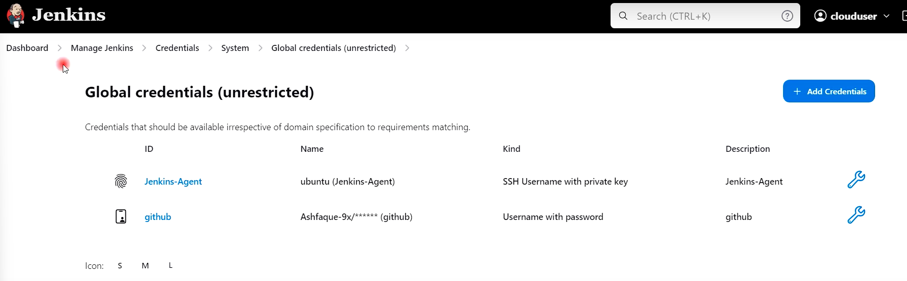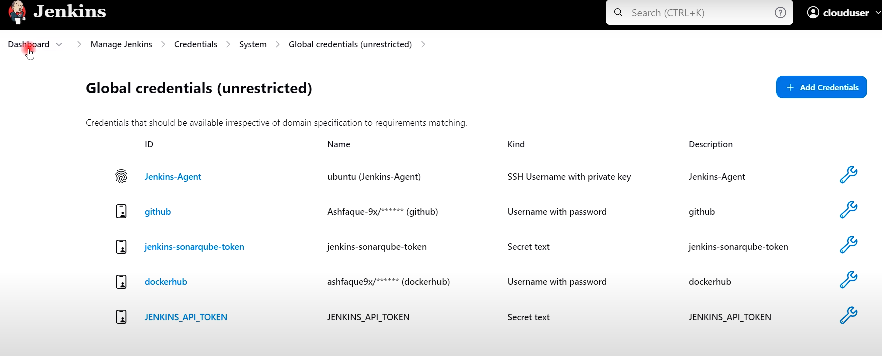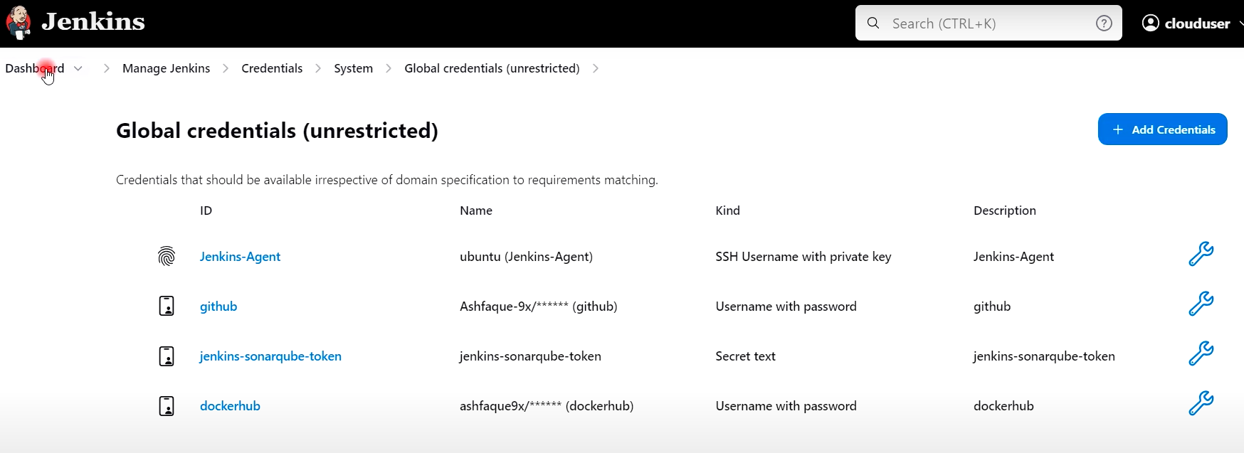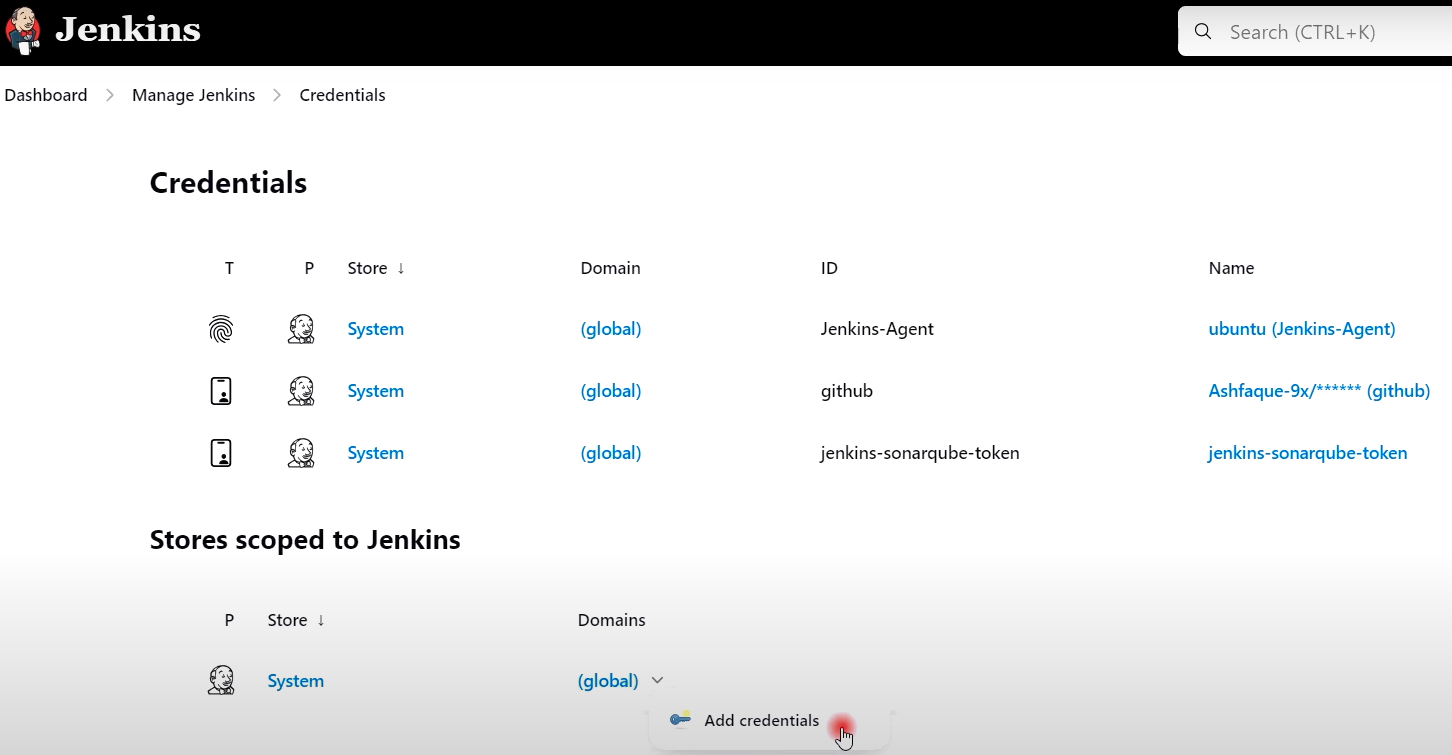 2) 젠킨스관리 --> Credentials --> 시스템 --> Global Credentials 클릭