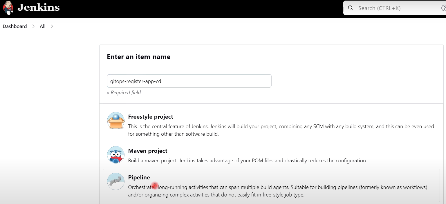 ## gitops-register-app-cd 파이프라인 생성