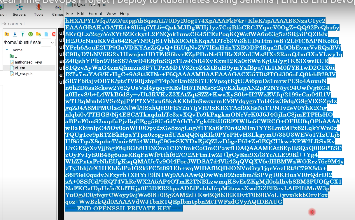 - 젠킨스 마스터 노드의 개인키 복사후, 등록
