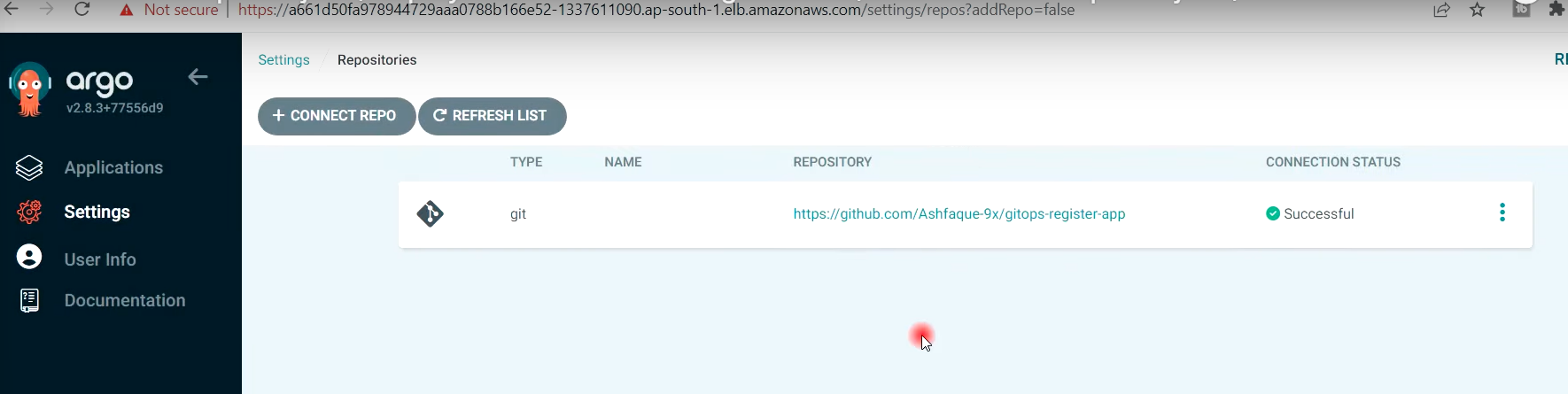 - 이 저장소를 ArgoCD 클러스터에 연결해야 함.