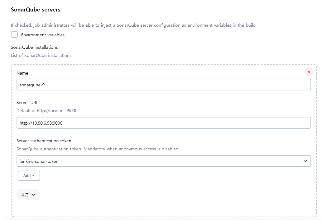 - 젠킨스 에이전트 서버의 내부 IP 등록