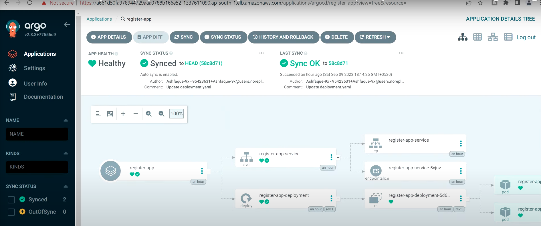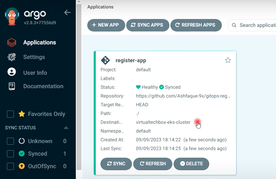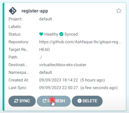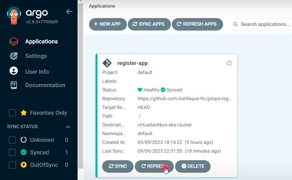 ## ArgoCD로 이동하여 새로고침 수행 (2:27분)