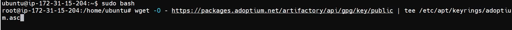 $ wget -O - https://packages.adoptium.net/artifactory/api/gpg/key/public | tee /etc/apt/keyrings/adoptium.asc