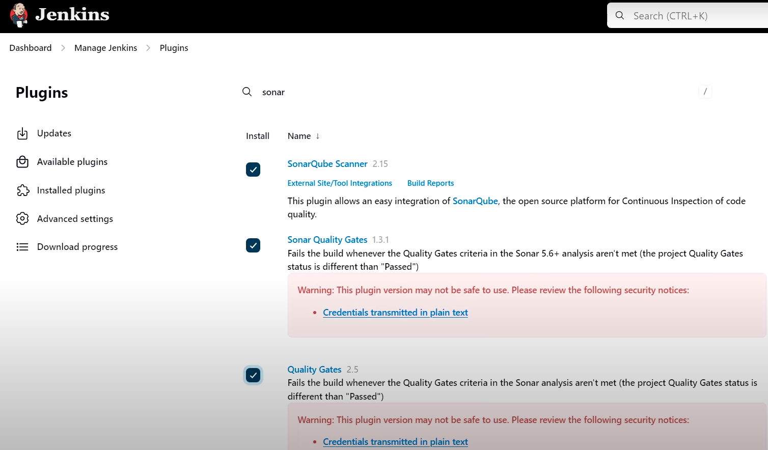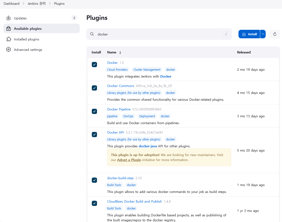- 플러그인 설치 (젠킨스에 내장 설치 방법)
