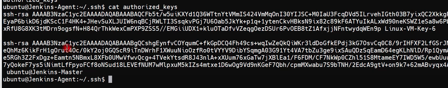 - 에이전트 서버로 이동 .ssh 폴더로 이동 --> authorized_keys 오픈해서 붙여넣기