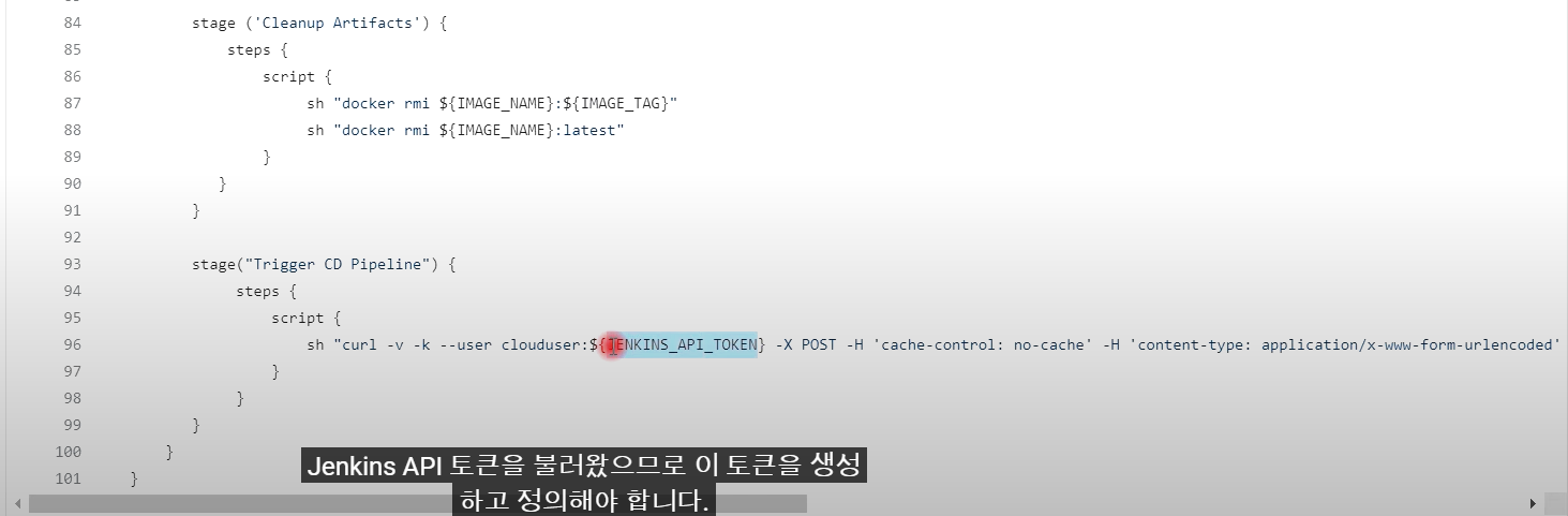3) Jenkinsfile 에 --> JENKINS_API_TOKEN 을 환경변수로 설정