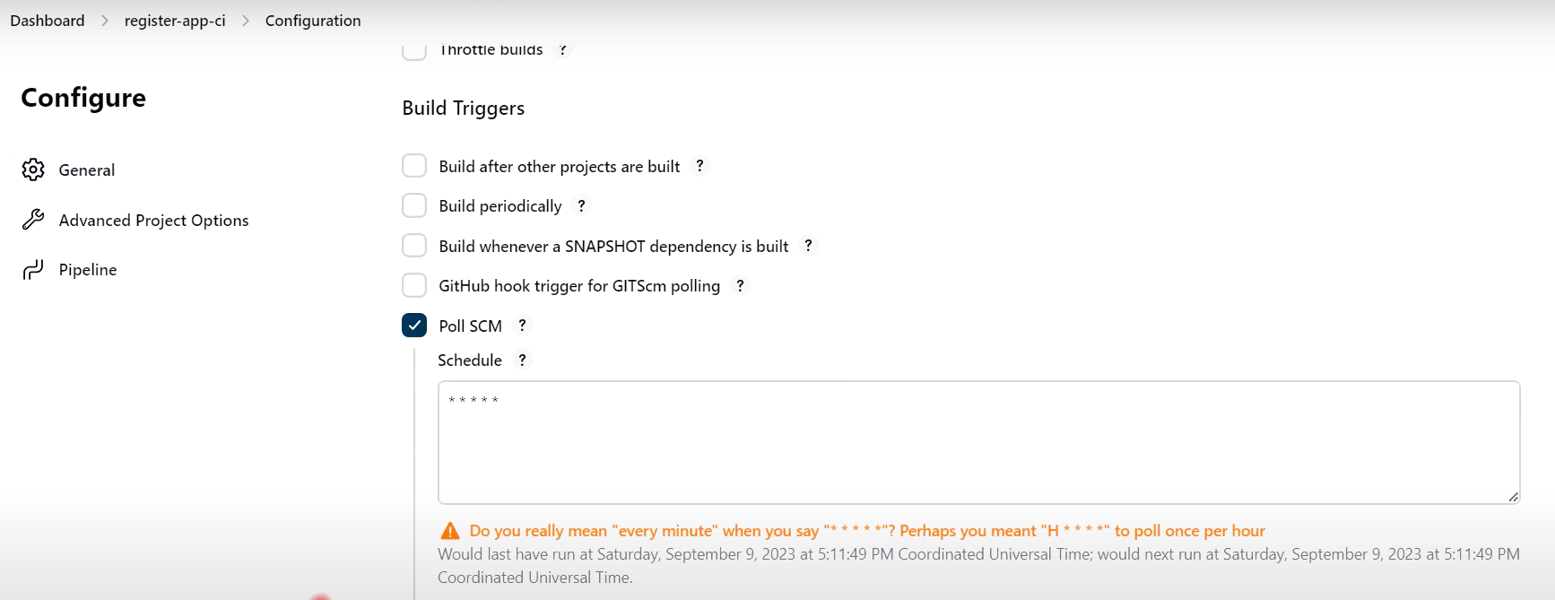 ## CI작업에 트리거 설정 (register-app-ci 파이프라인 --> Configure 이동)