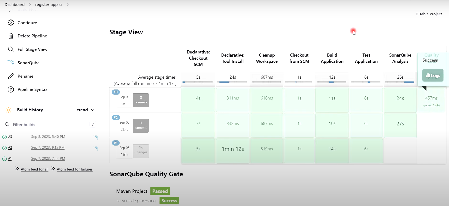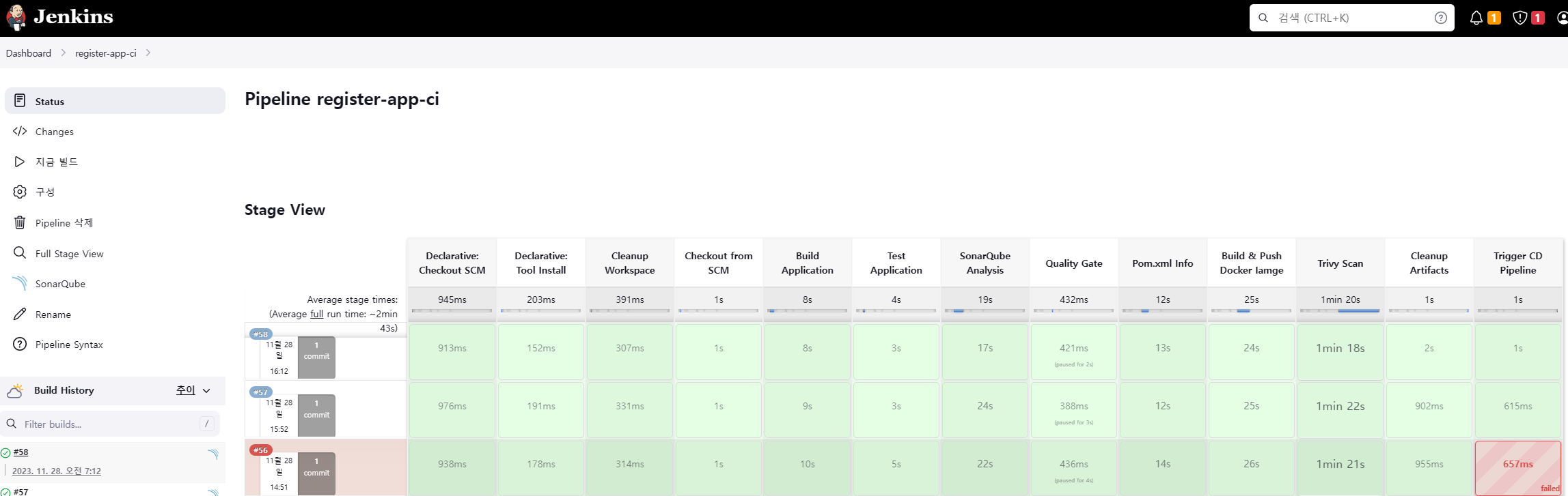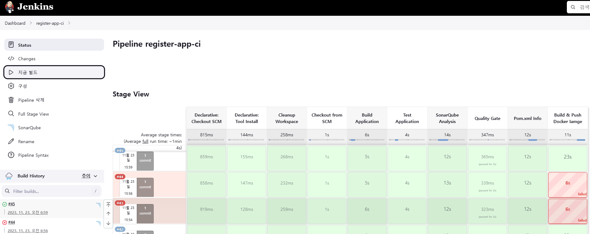 - Pipeline register-app-ci 빌드 성공