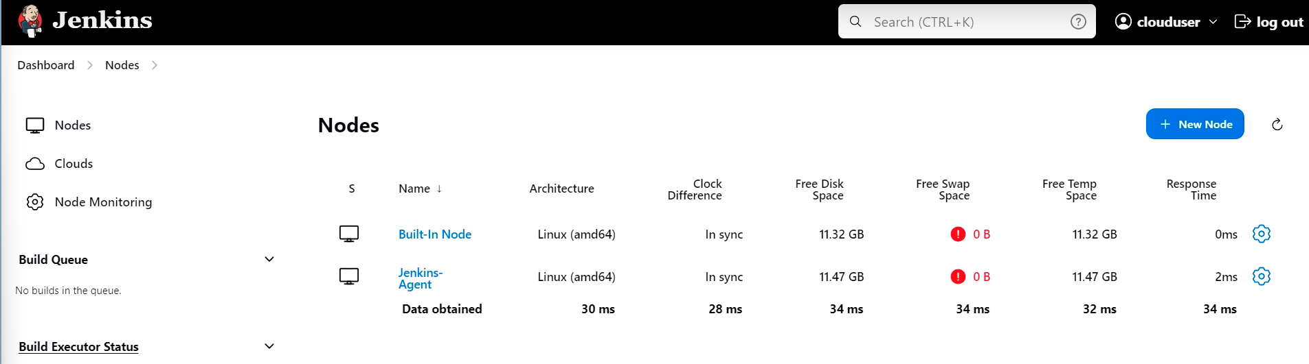 - 최종적으로 에이전트 서버가 젠킨스에 추가됨