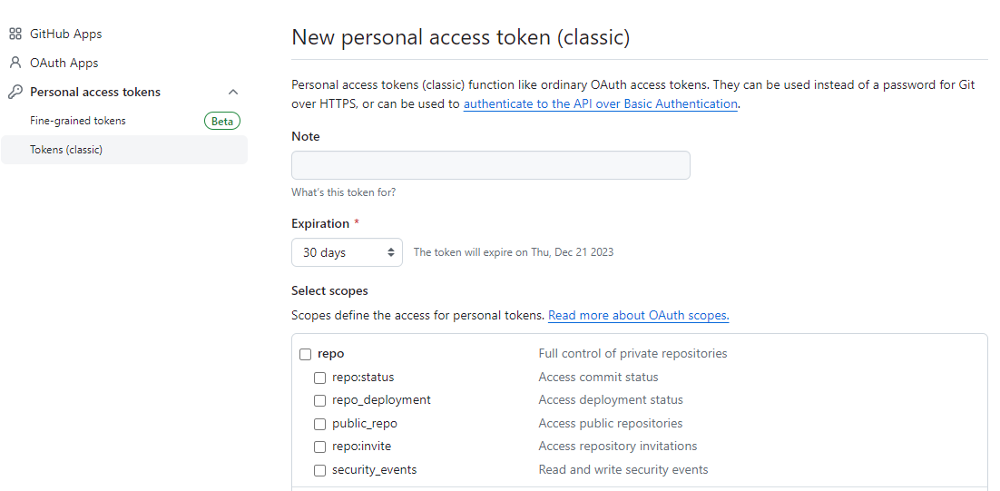 - 깃허브로 가서 토큰 확인 --> Settings --> Developer settings --> Tokens (classic)