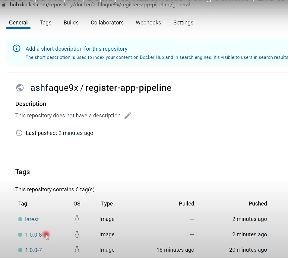 - 도커허브에서 Image 태그 8번 변경 확인