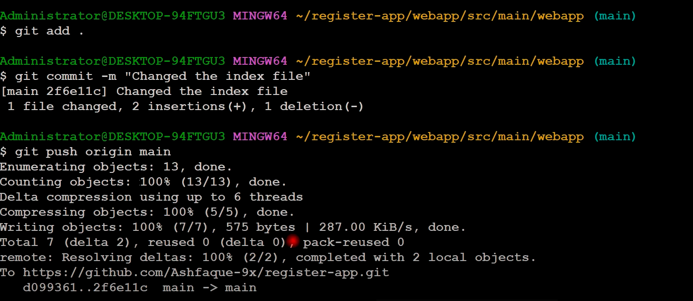 ## index.jsp 소스파일 수정 후, git push 완료