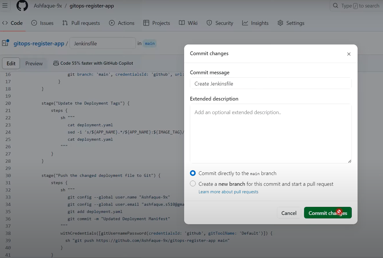 stage("Push the changed deployment file to Git") {