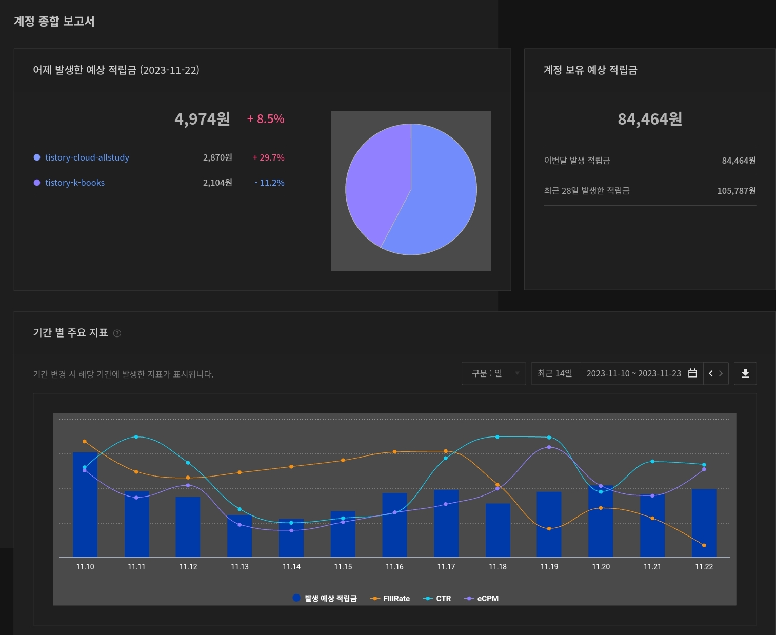 | [11/24][역행자 동기부여] 블로그 성장기 애드핏&애드센스 수익 !! (44) | 2023.11.24 |