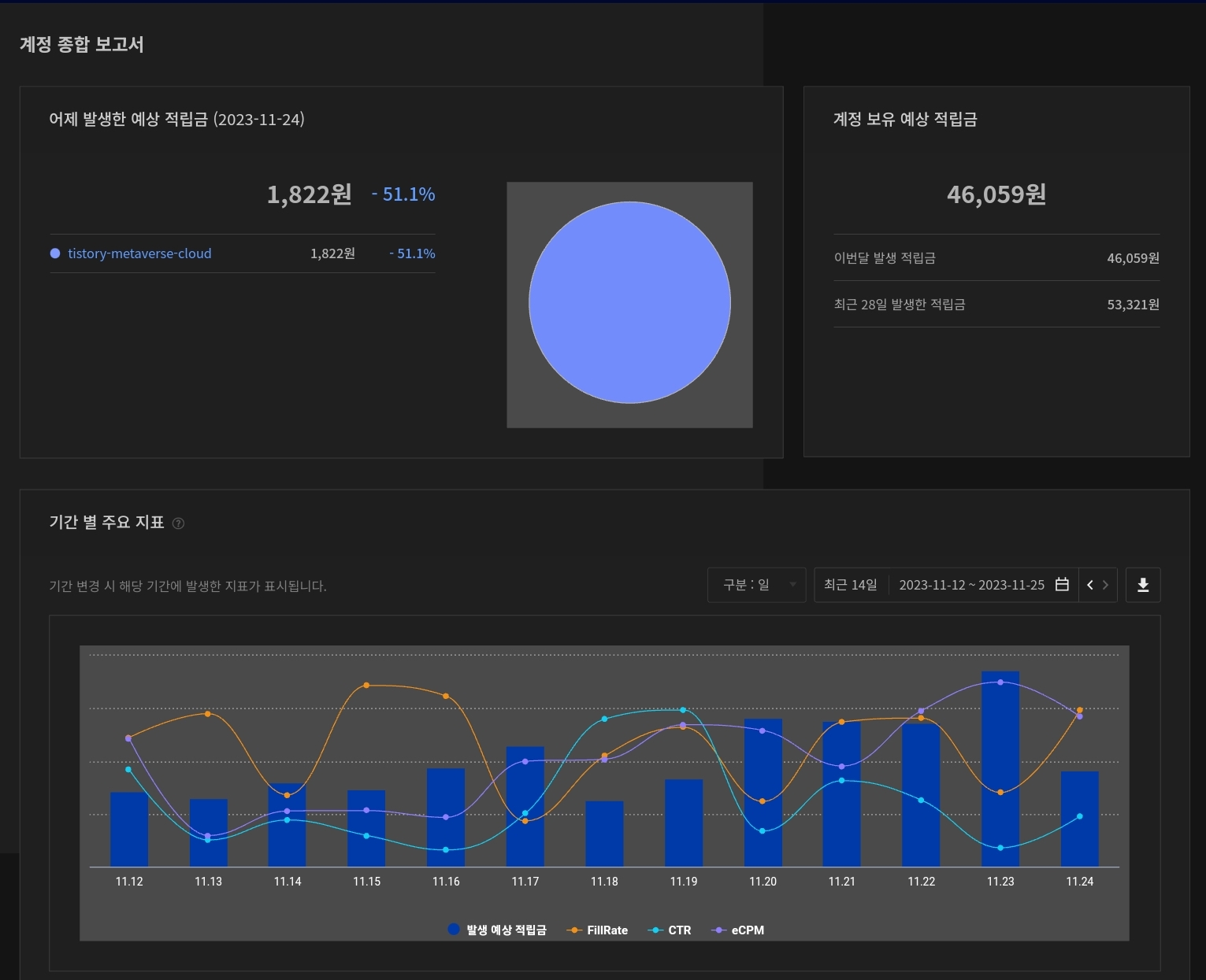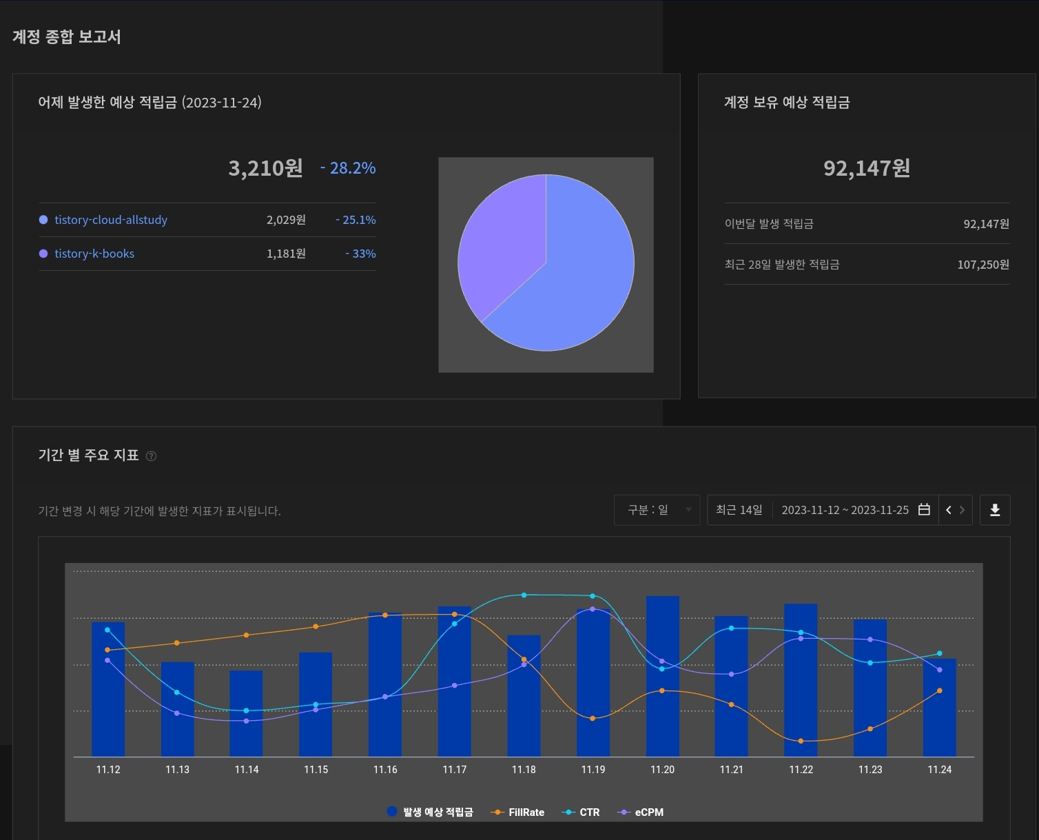 | [11/24][역행자 동기부여] 블로그 성장기 애드핏&애드센스 수익 !! (44) | 2023.11.24 |