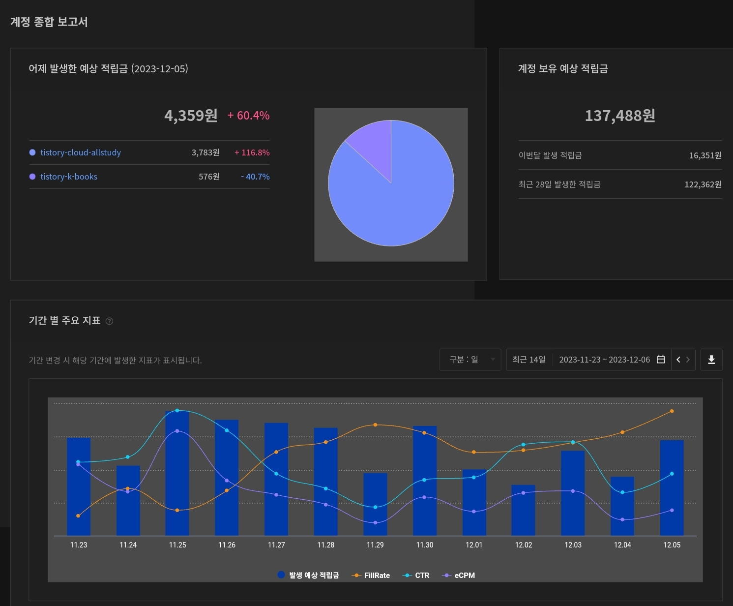 | [12/4][역행자 동기부여] 블로그 성장기 애드핏&애드센스 수익 !! (45) | 2023.12.04 |