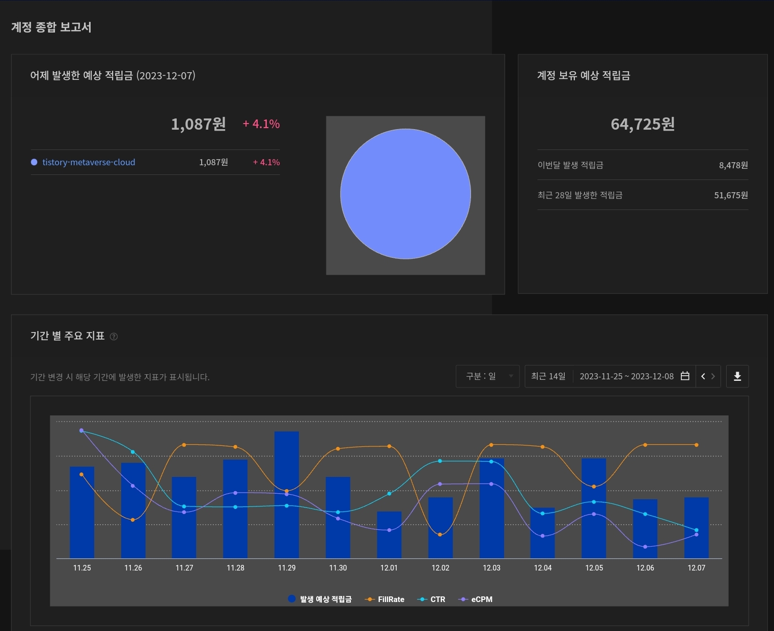 | [12/7][역행자 동기부여] 블로그 성장기 애드핏&애드센스 수익 !! (52) | 2023.12.07 |