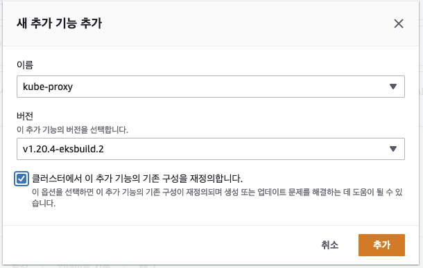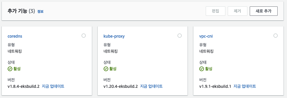 ㅇ 이후에는 클러스터의 추가기능(add-on)을 업데이트할 것이다.