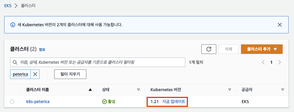 ㅇ eksctl get addon --name kube-proxy --cluster k8s-peterica 명령어로 kube-proxy 버젼을 확인하였다.