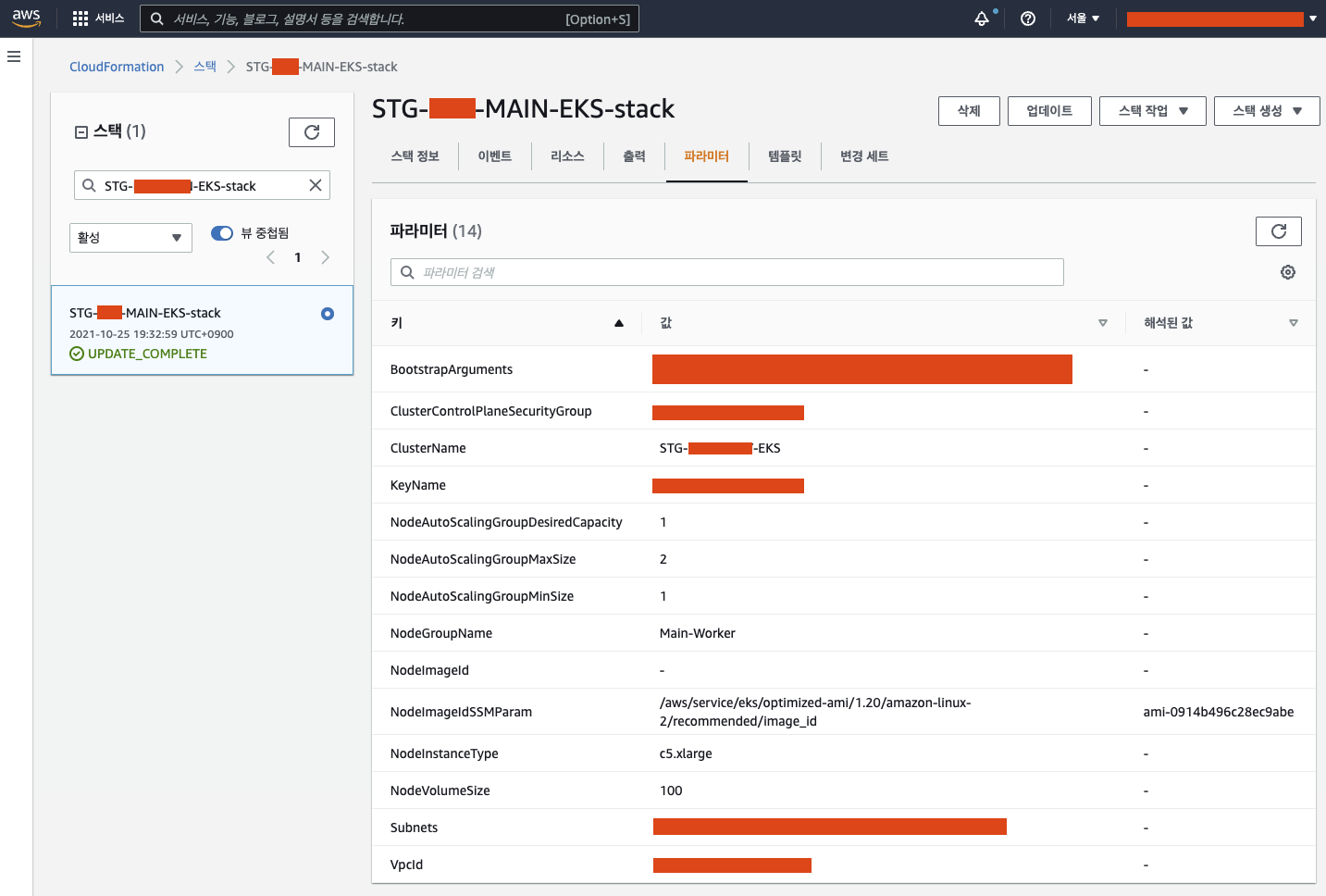 ㅇ 수정이 필요한 부분은 NodeImageIdSSMParam 부분이다.