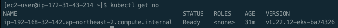 ip-192-168-32-142.ap-northeast-2.compute.internal Ready <none> 31s v1.22.12-eks-ba74326