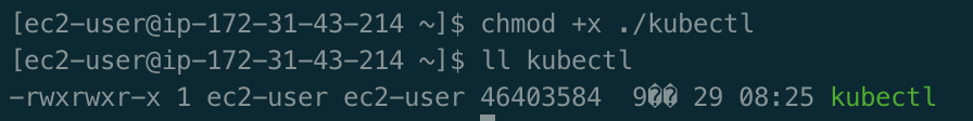 [ec2-user@ip-172-31-43-214 ~]$ chmod +x ./kubectl