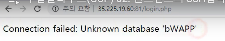 - http://IP주소:81/install.php (here 클릭하여 bWAPP 설치 --> 데이터베이스 설치)