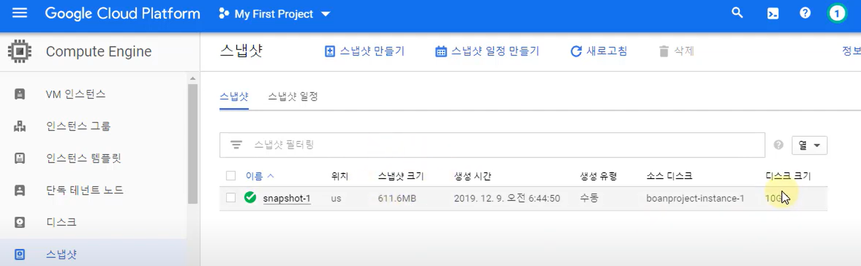 | [GCP] 08. 인스턴스 스냅샷 이해와 백업으로 활용하기 (5) | 2023.12.26 |
