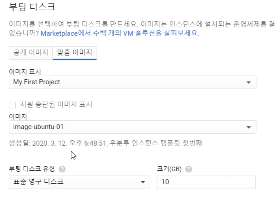 - 부팅디스크 변경 --> image-ubuntu-01 이미지 선택