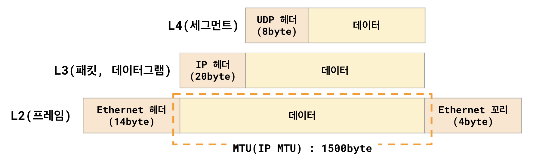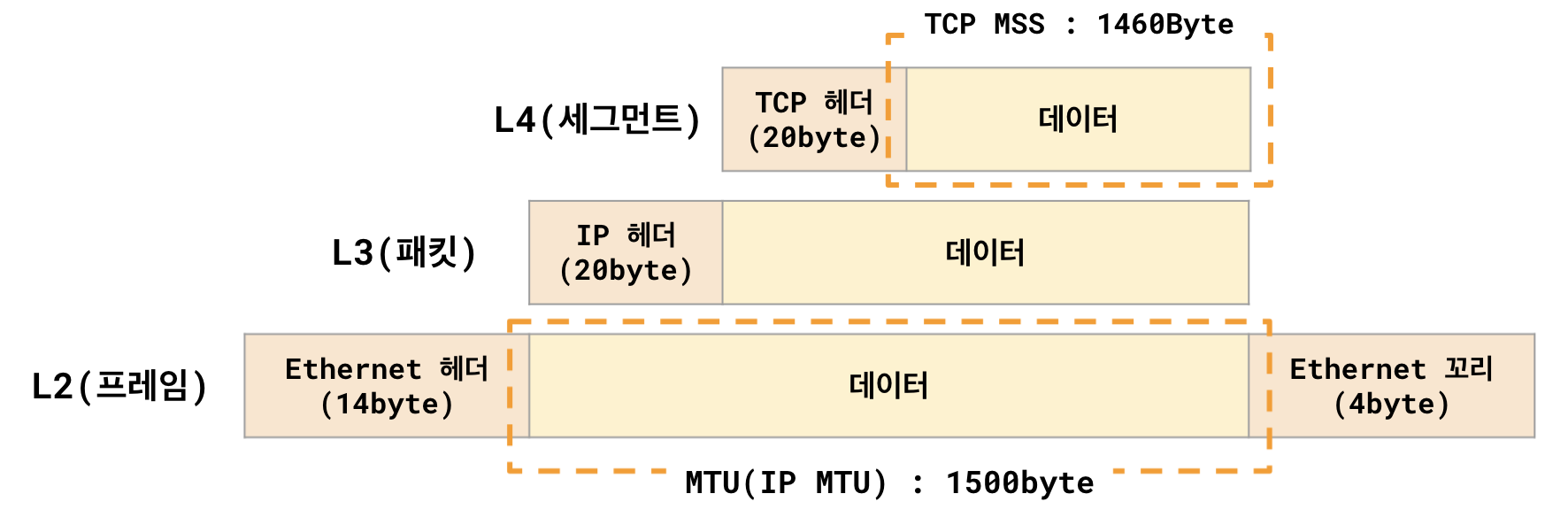 L3 계층(패킷)이 설정된 MTU 사이즈보다 클 경우 IP 단편화가 이루어져 전송 속도에 영향을 줄 수 있음