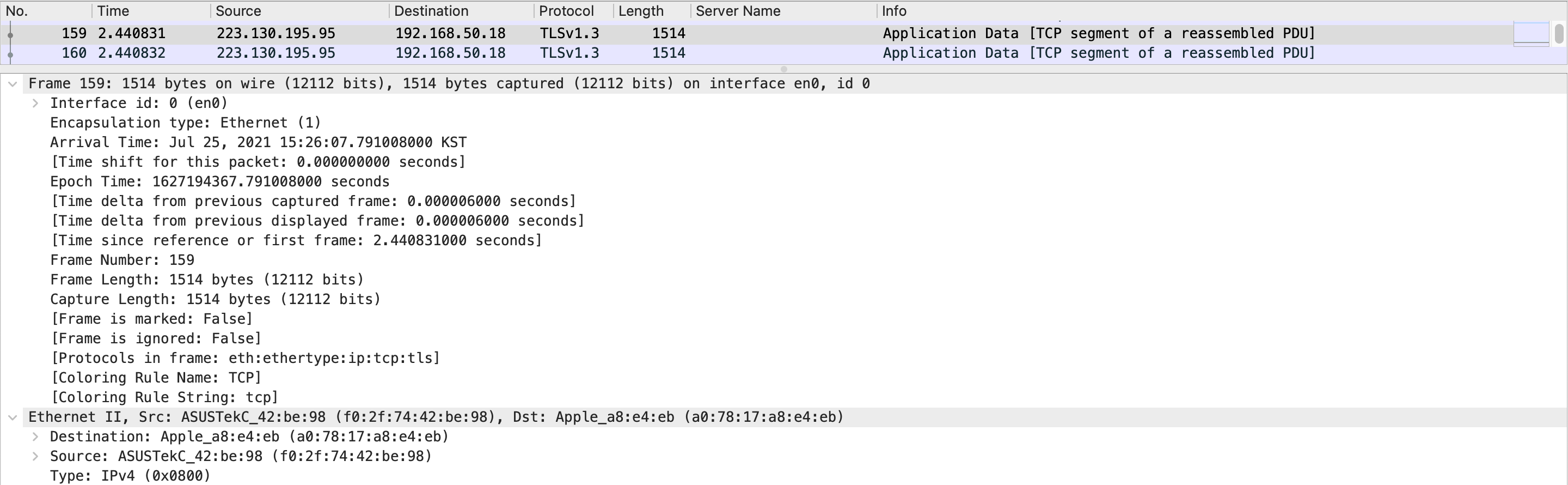 - Frame은 Ethernet 꼬리를 제외 1514byte로 구성