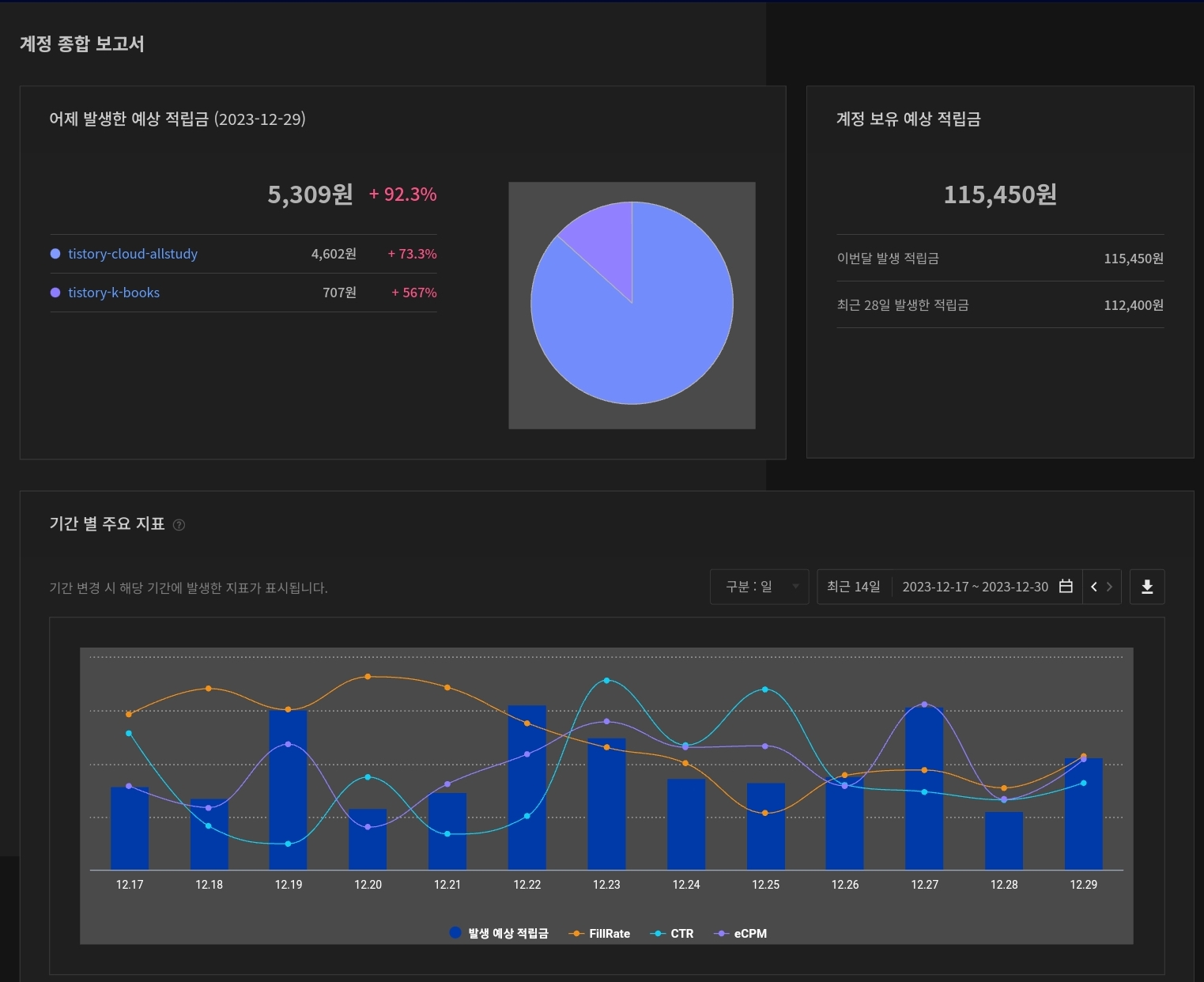 | [12/26][역행자 동기부여] 블로그 성장기 애드핏&애드센스 수익 !! (59) | 2023.12.26 |