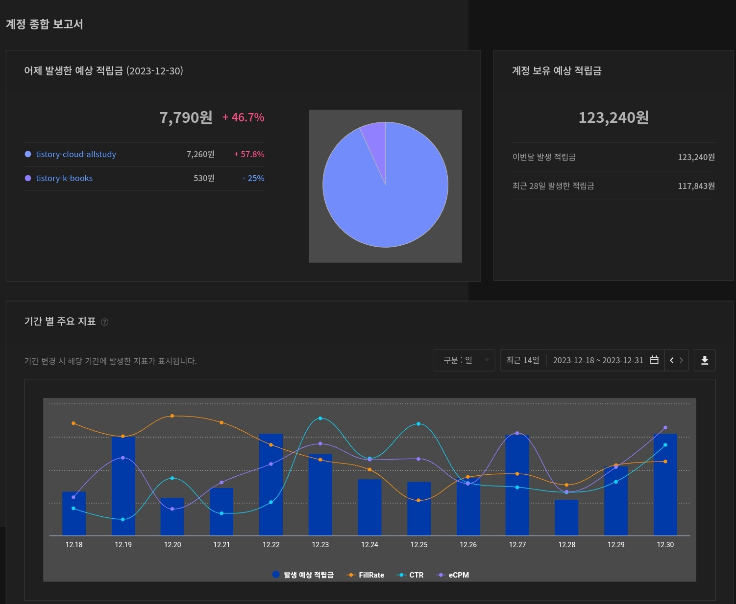 | [12/30][역행자 동기부여] 블로그 성장기 애드핏&애드센스 수익 !! (53) | 2023.12.30 |