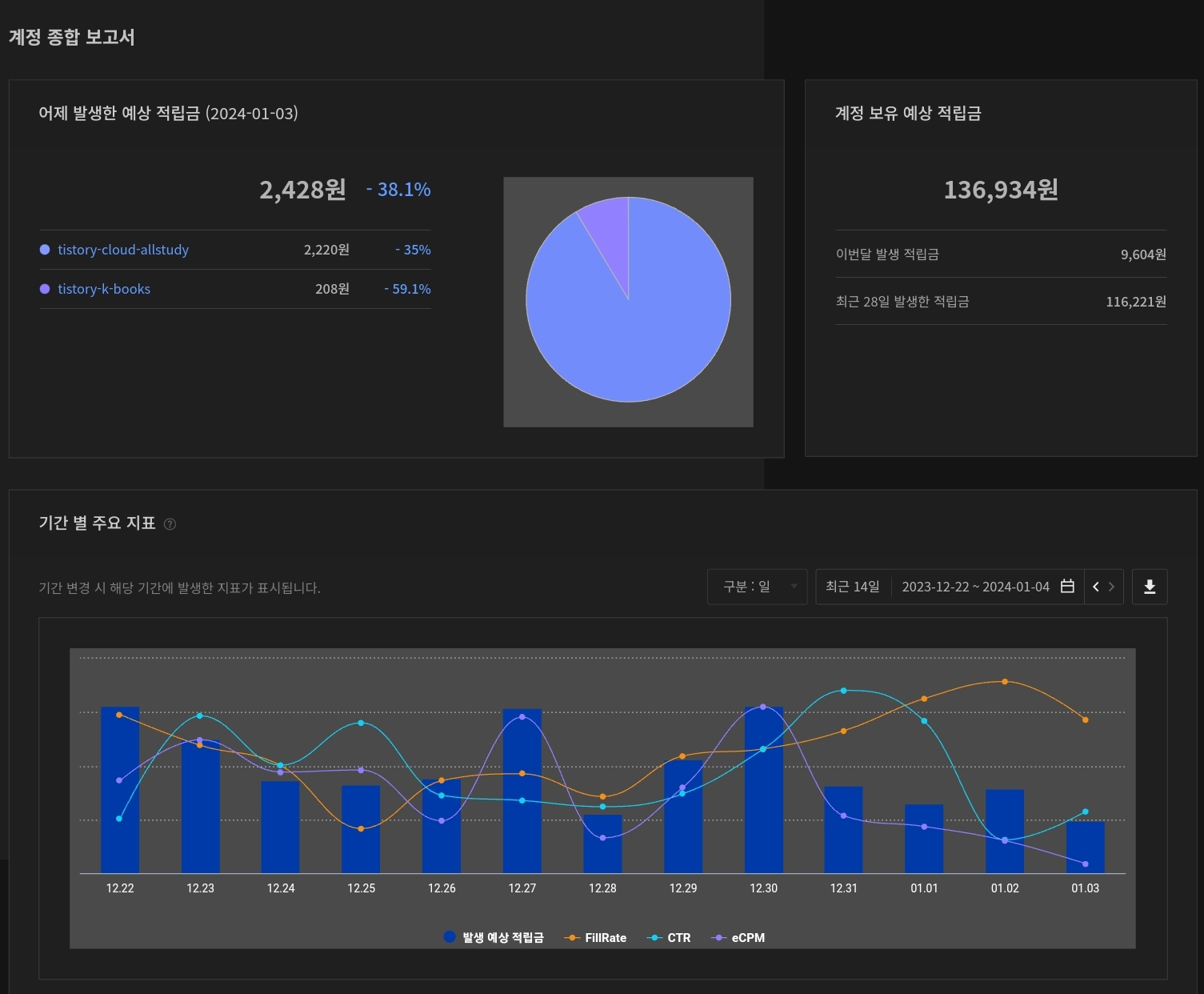 | [1/3][역행자 동기부여] 블로그 성장기 애드핏&애드센스 수익 !! (51) | 2024.01.03 |
