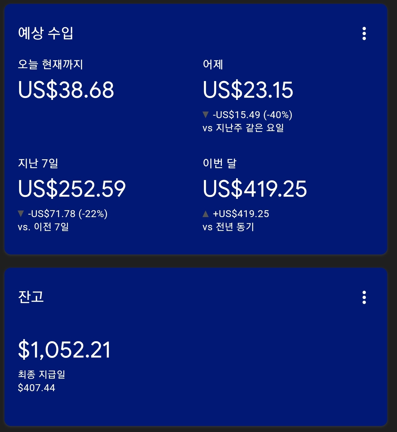 | [1/10][역행자 동기부여] 블로그 성장기 애드핏&애드센스 수익 !! (56) | 2024.01.10 |