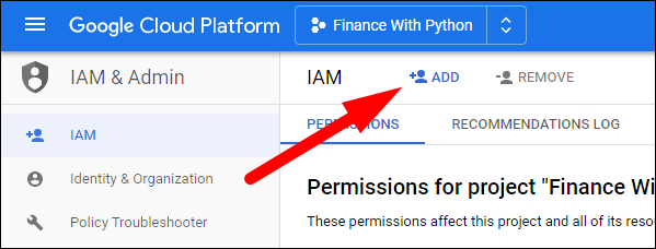 Google Cloud Platform 콘솔의 사이드바에서 IAM 및 관리자를 찾아 IAM을 클릭합니다.