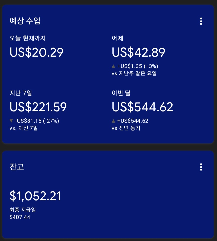 | [1/11][역행자 동기부여] 블로그 성장기 애드핏&애드센스 수익 !! (67) | 2024.01.11 |