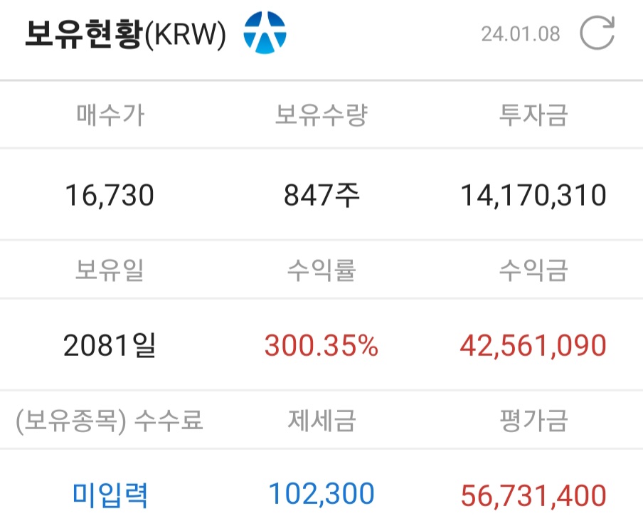 | [2/8] 메리츠금융지주 주가 수익률 330% 돌파!! (81) | 2024.02.08 |