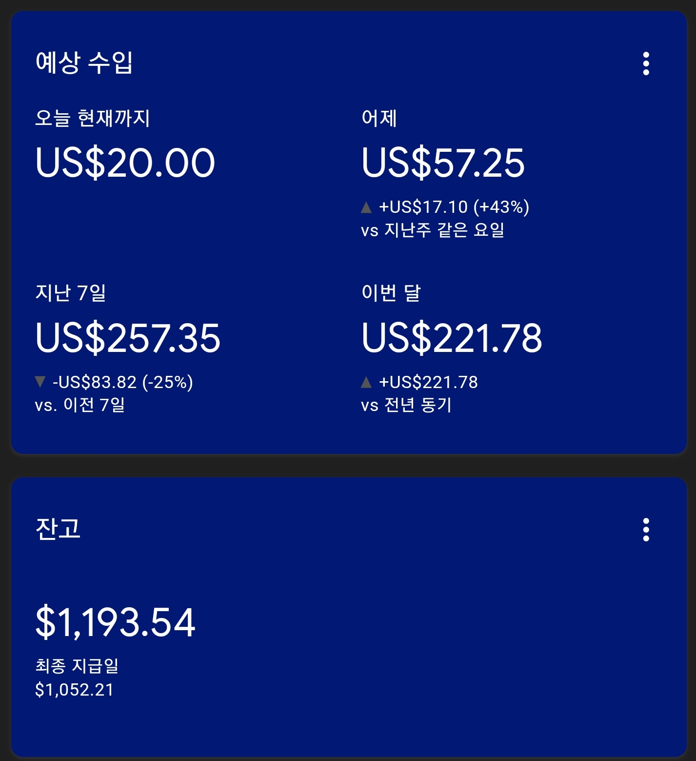 | [2/13][역행자 동기부여][370달러 돌파!!] 애드핏&애드센스 수익 !! (54) | 2024.02.13 |