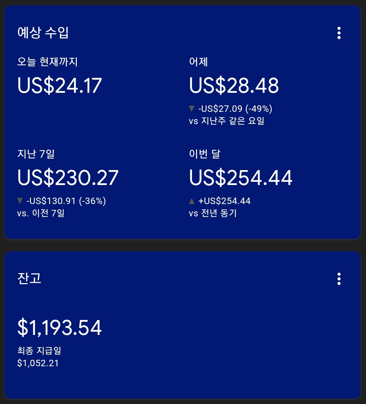 | [2/7][역행자 동기부여] 블로그 성장기 애드핏&애드센스 수익 !! (78) | 2024.02.07 |